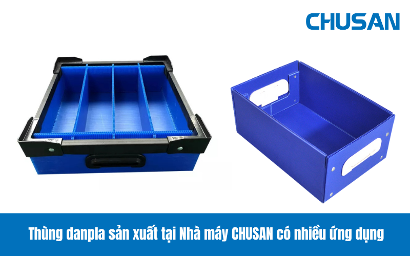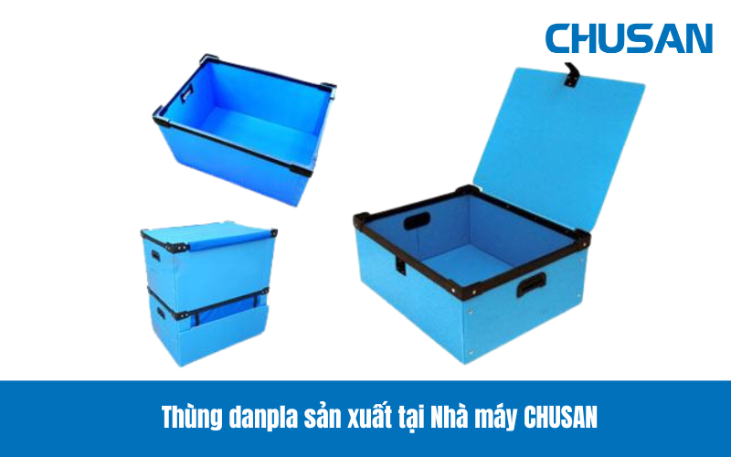 Thùng danpla màu xanh, có vách ngăn, tay cầm sản xuất tại Nhà máy CHUSAN