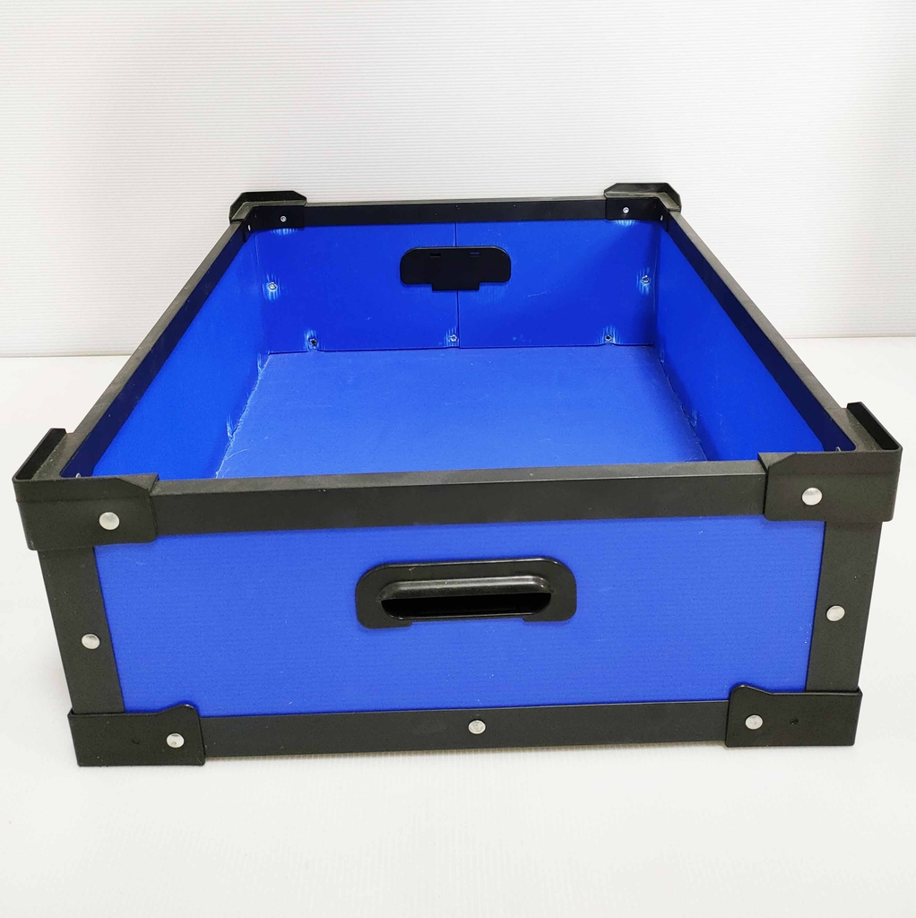 - Thùng nhựa Danpla màu xanh, size trung bình, nẹp các góc sẽ giúp thùng chắc chắn hơn.